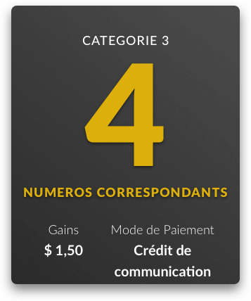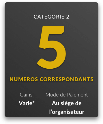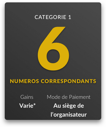 Les montants des lots et mode de paiement par catégorie de lots sont les suivants: